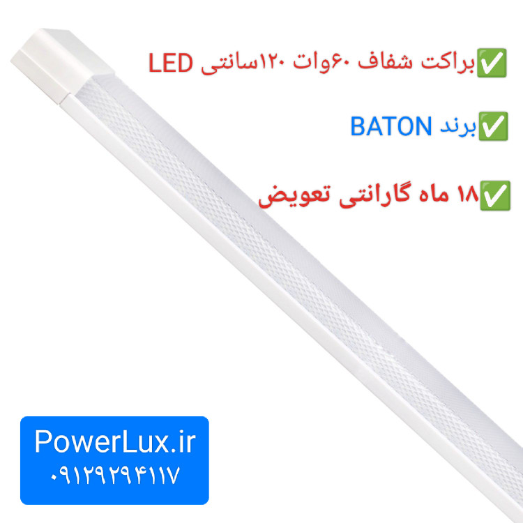 براکت 60وات 120سانت(شفاف) LEDبرندBATON-گارانتی18ماه