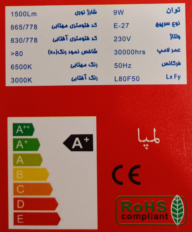 لامپ ۹وات LED لمپا(بدنه استاندارد) -گارانتی۱۲ماه