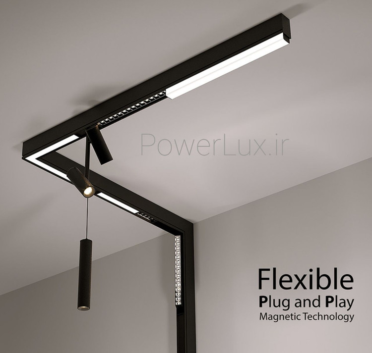- بعد از نصب ریل مغناطیسی بهراحتی میتوانید آن را با چراغهای مگنتی مختلف مجهز کرد. از نورافکن، لامپ شبکه گرفته تا نوار نور مغناطیسی تزئینی، روشنایی خطی فرورفته و غیره را میتوان اعمال کرد.